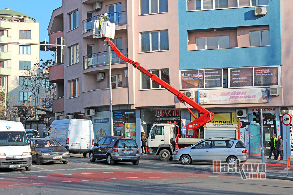 С една от двете вишки на „Екопрогрес“, предвидени за поддръжка на уличното осветление, днес се подменяха лампите по хасковския булевард „България“. Действията на общинското предприятие бяха заснети от читател на Haskovo.info.