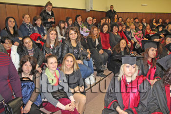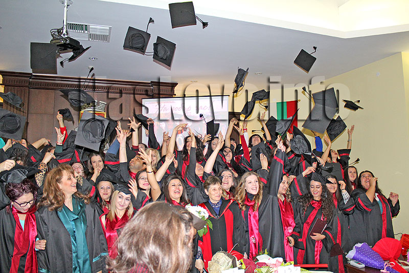 Дипломите си за бакалаври получиха 38 медицински сестри и 18 акушерки. Първенец на випуска е Клементина Димова в специалност „Медицинска сестра“, която вече работи в Очния център в Хасково. Димова приветства своите колеги.