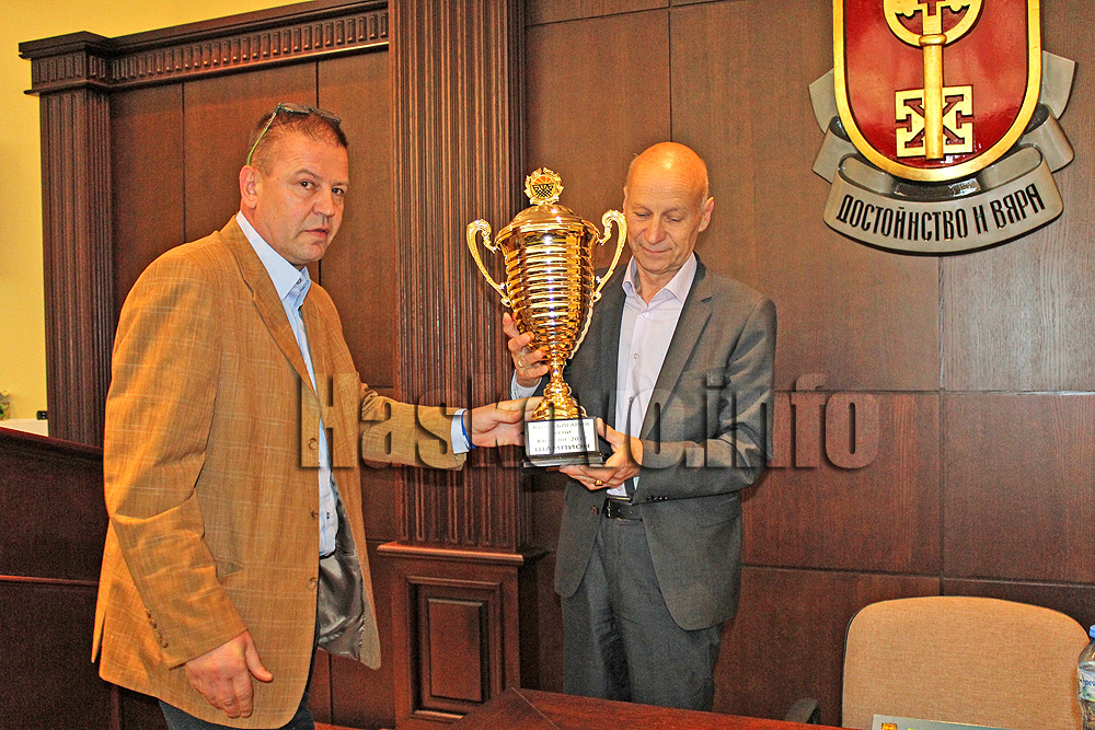 Изпълнителният директор на баскетболния клуб „Хасково 2012“ Станислав Станков подари спечелената от отбора Купа на България на общината в лицето на кмета Добри Беливанов.