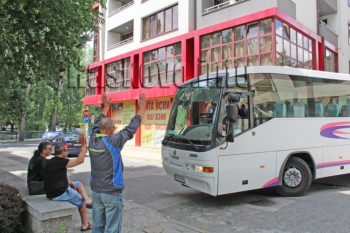 Автобуса няма работа там, за глоба е.Има забранителен знак за автобуси още до блока преди туристическия център.