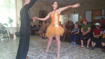 Те подариха на възрастните хора дрехи, консумативи и ги почерпиха със сладки. Александра Толумова, Камелия Георгиева, Марина Колева и Тодор Тодоров се представиха с програма.