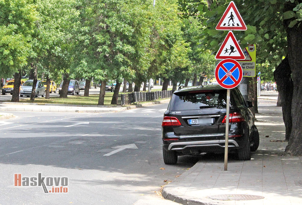 В търсене на сянка джип Мерцедес беше паркирал на тротоара на булевард „Съединение“ до Спортното училище „Стефан Караджа“ в Хасково.