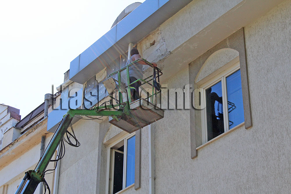 Ремонт на фасада, поддала от големия сняг през зимата, започна тази сутрин в центъра на Хасково.