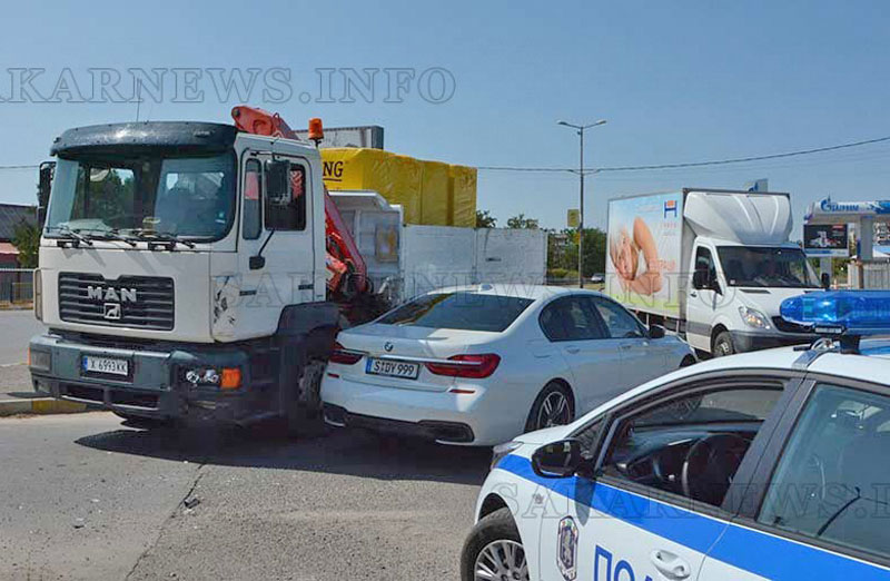 Водачът на БМВ-то спрял на стопа и навлезнал в главния път без да види, че от ляво идва товарен автомобил, съобщава „Сакарнюз“. При сблъсъка е изкривена задната врата на леката кола и е счупен фар на камион.