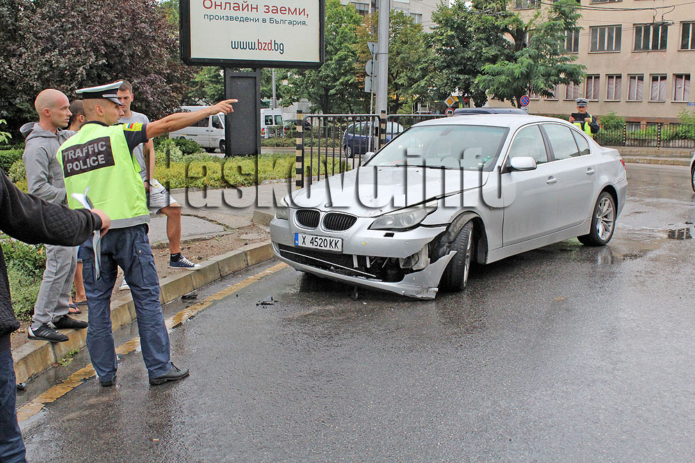 БМВ се блъсна в автобус с пътници в кръговото движение на булевард „Раковски“ в Хасково.