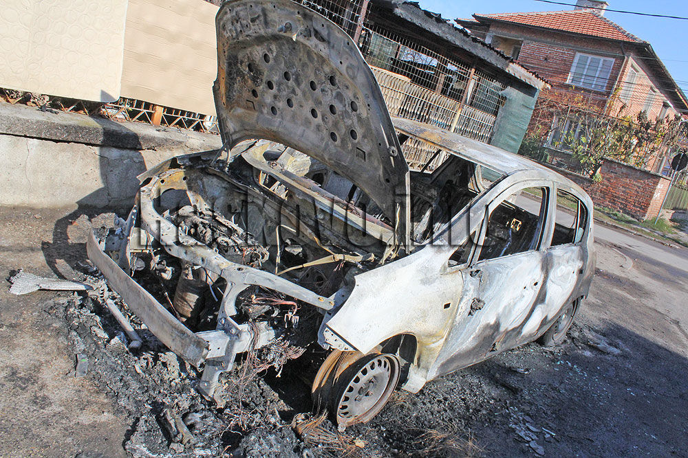 Колата е на зам.-директора на Спортното училище „Стефан Караджа“ Дима Алексиева, а от полицията извършват оглед на изгорялата кола. Една от версиите е палеж.