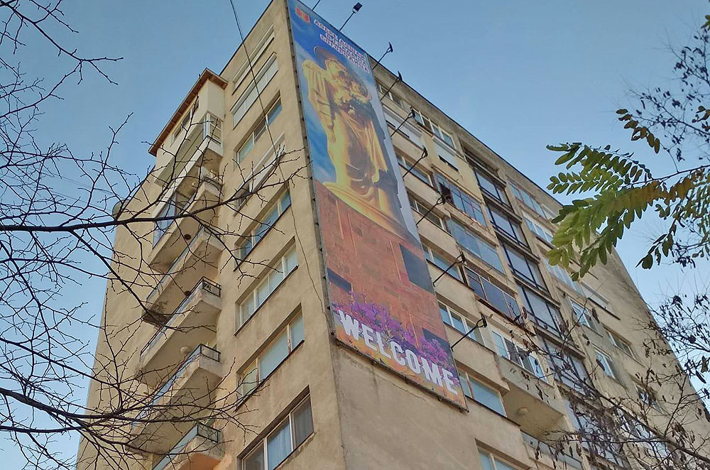 След като го ремонтираха от общината върнаха паното със Св. Богородица на блока на хасковския булевард „Раковски“.