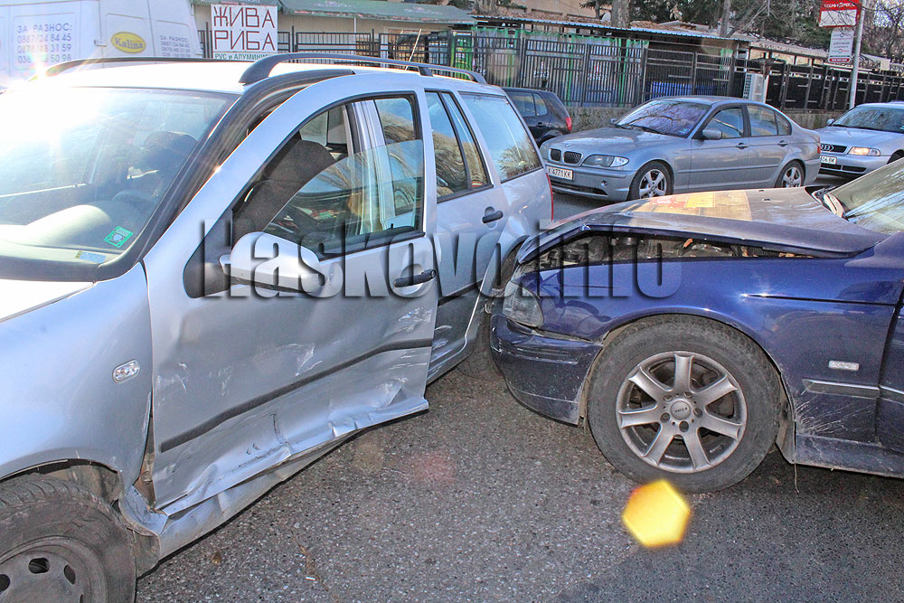 Фолксваген и БМВ катастрофираха в кръстовището на булевардите „България“ и „Васил Левски“ до Захарна фабрика в Хасково.