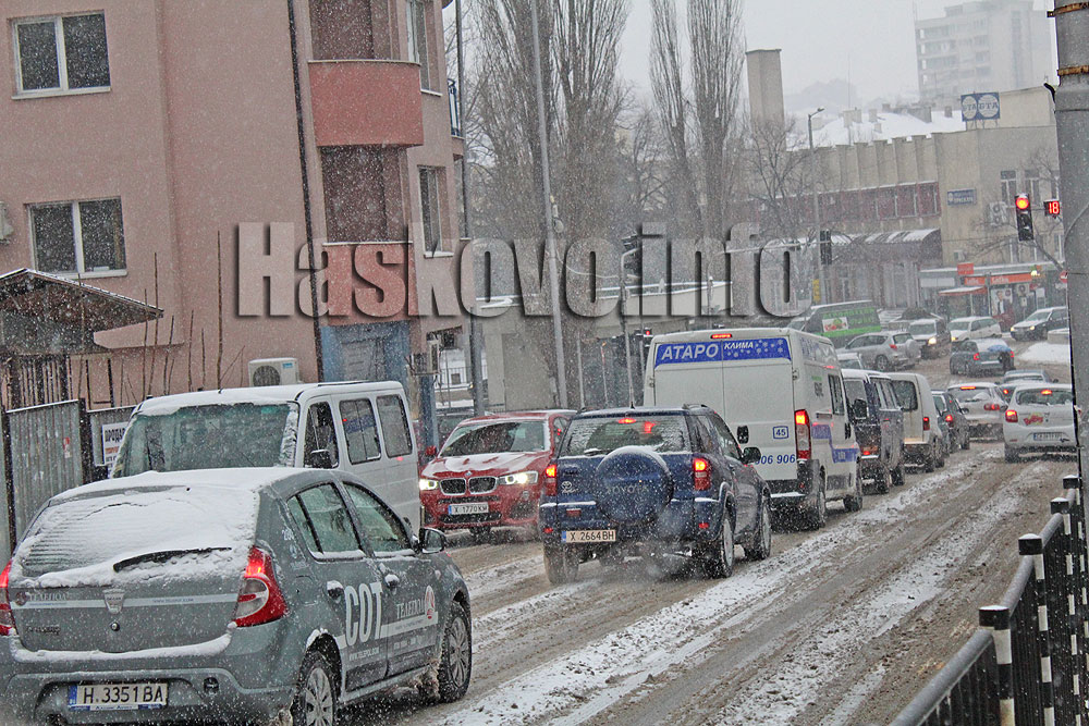 Големи задръствания се образуваха тази сутрин по непочистените от снега булеварди в Хасково.
