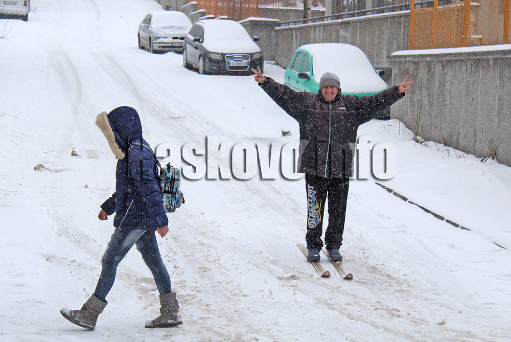 По непочистените улици със ски. Забраниха тежките камиони към Тополовград