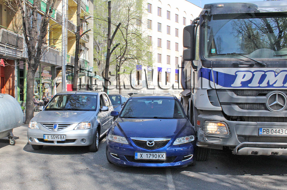И да по закон камиона има право да минава от там, а колите НЯМАТ право да са паркирани там