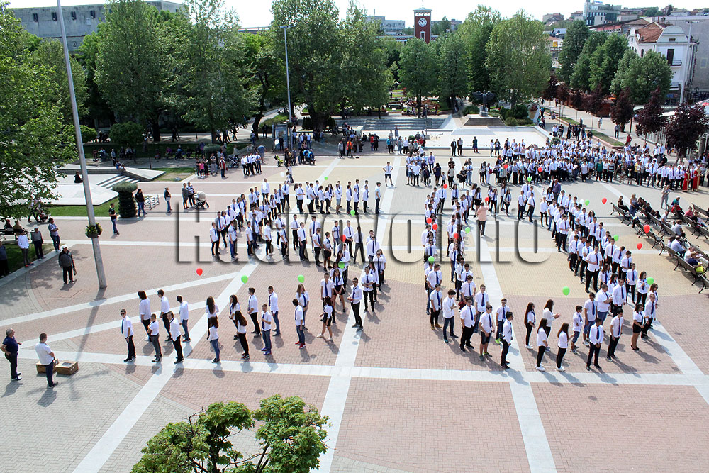 По обяд ученици се подредиха под формата на 50 на площад „Свобода“. Гимназистите пуснаха в небето балони и 50 бели гълъба, като скандираха ПГДС.