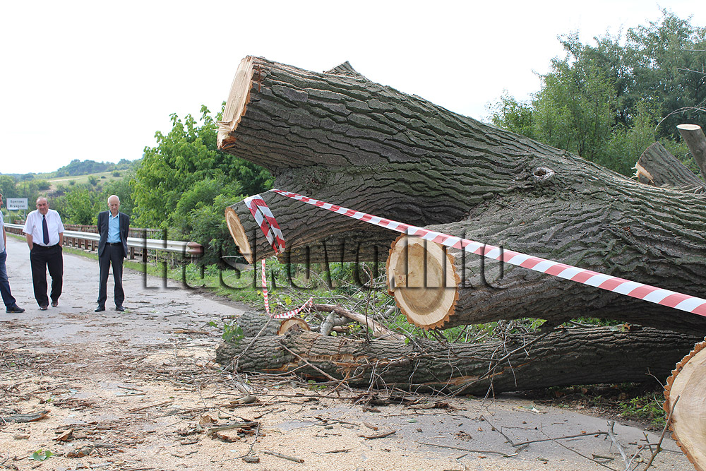 Шосето към хасковското село Брягово е било препречено от огромна топола, която е счупена от силния вятър. Още снощи екип на „Екопрогрес“ е успял да изреже част от дървото и е освободил пътя. Днес продължи разчистването, а на място дойде и кметът Добри Беливанов.