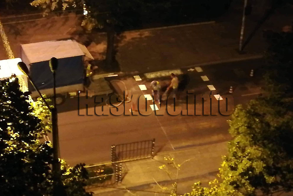 Снимки на среднощно разчертаване на пешеходни пътеки в Хасково изпратиха читатели на Haskovo.info. Става дума за булевард „Раковски“ до училище „Св. Иван Рилски“.
