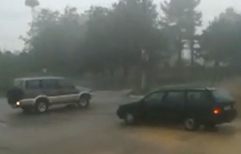 Проливният дъжд и силният вятър около 14 часа принудиха шофьори да отбият от главния път, който преминава през село Конуш. Няма данни за паднала градушка.