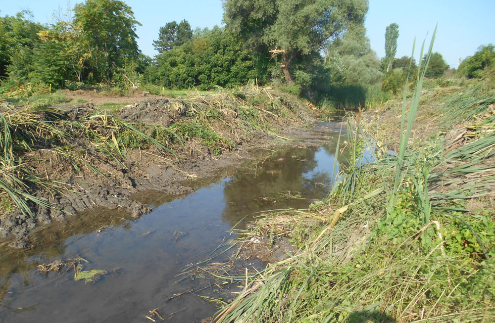В участъка, който се почиства, коритото на реката е изместено към двора на къща, има наноси. Досега, при силни валежи или изпускане на вода от язовира, част от дворовете в съседство са наводнявани. За да се предотвратят подобни разливи в бъдеще се прави заскаляване на брега откъм двора на къщата, оформя се завоя на реката и се почиства коритото от наноси и растителност.