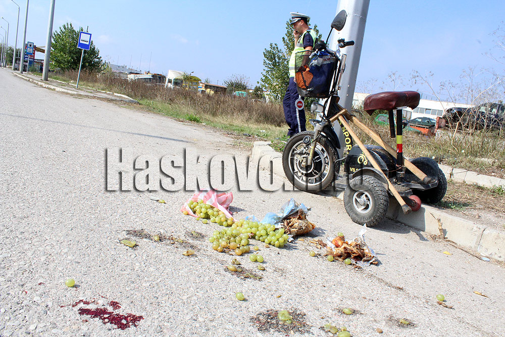 Пострадалият беше откаран до болницата с линейка. На асфалта има кръв и разпиляна чанта с покупки.