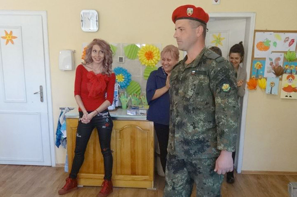 Появата на снайпериста предизвика истинска еуфория в дневния център, като всички му се радваха и го поздравяваха, ефрейторът подари на две от децата нашивки, разказа Ганева. От центъра също подготвили подаръци за госта си.