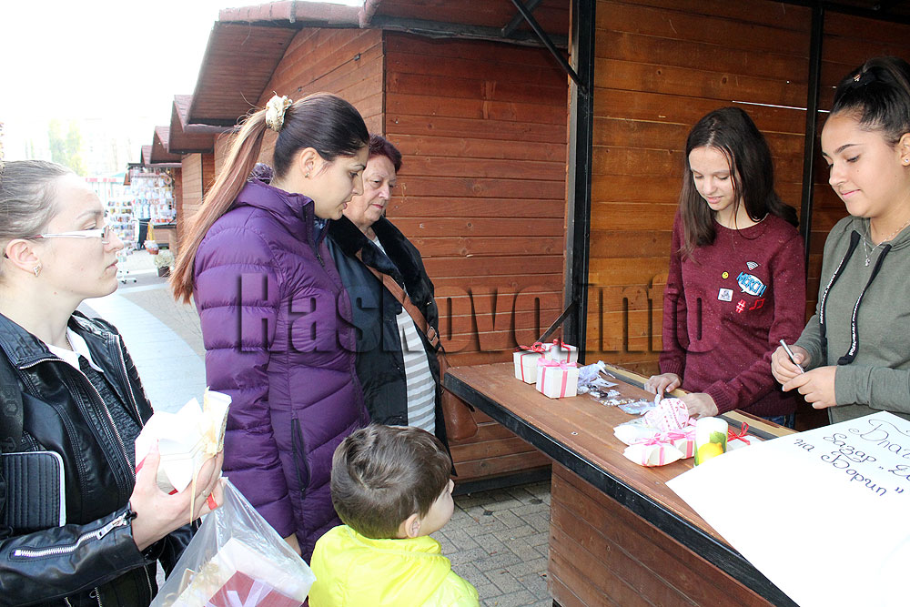 Емили Манолова, Виктория Грущилова и Нели Делева изработиха картички, красиви кутийки с подаръци, гривнички. Ученичките в Езиковата гимназия „Асен Златаров“ още подреждаха базара в една от дървените къщички в центъра на Хасково, когато пристигнаха и първите клиенти.