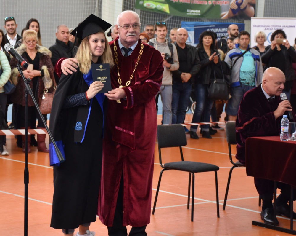 Хасковлийката Стамена Стамова получи своята диплома за бакалавърска степен от ректора на Национална спортна академия „Васил Левски“ Пенчо Гешев.