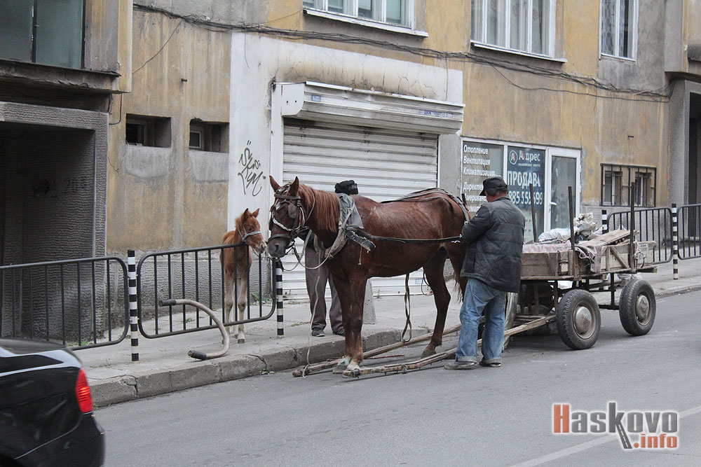 Кобила падна след обяд на оживения хасковски булевард „Съединение“ в центъра на Хасково. Според минувачите животното е изнемощяло. По думите на собственика, който успя да изправи кобилата, тя се е подхлъзнала.