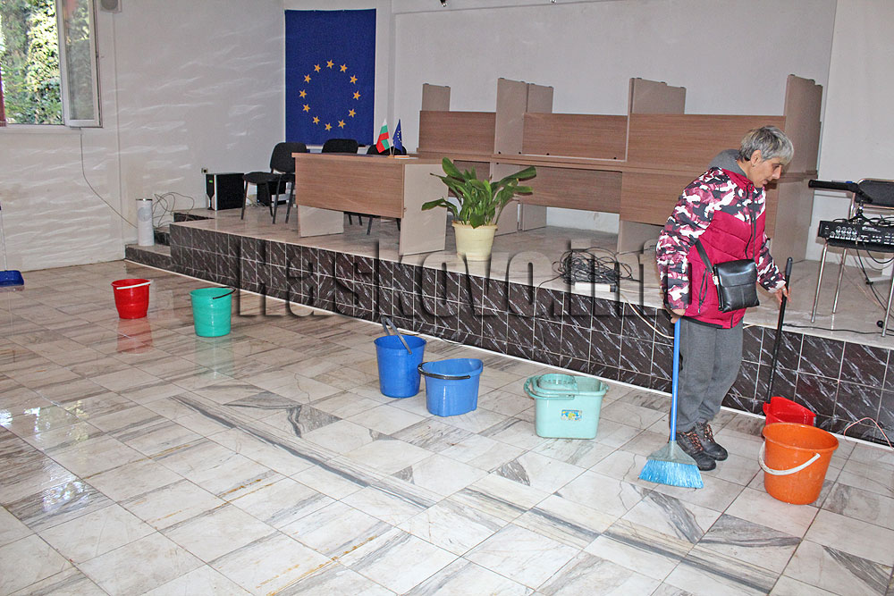 Хората, които до обяд отводняваха залата разказаха, че вече са изхвърлили над 50 кофи вода. В същото време водата продължава да избива от няколко места.