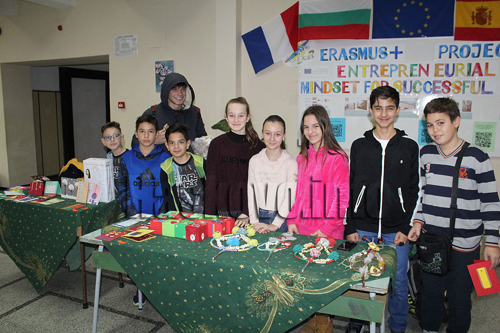Децата продаваха коледни картички, сувенири и сурвачки. Парите ще са за Ади, която страда от Стеноза на главния десен бронх и се нуждае от 14 000 евро за операция във Виена, Австрия. Базарът е в програмата за Коледната седмица на ПМГ. На третия етаж младите художници от школа „Шарено“ направиха базар на красивите си картини.