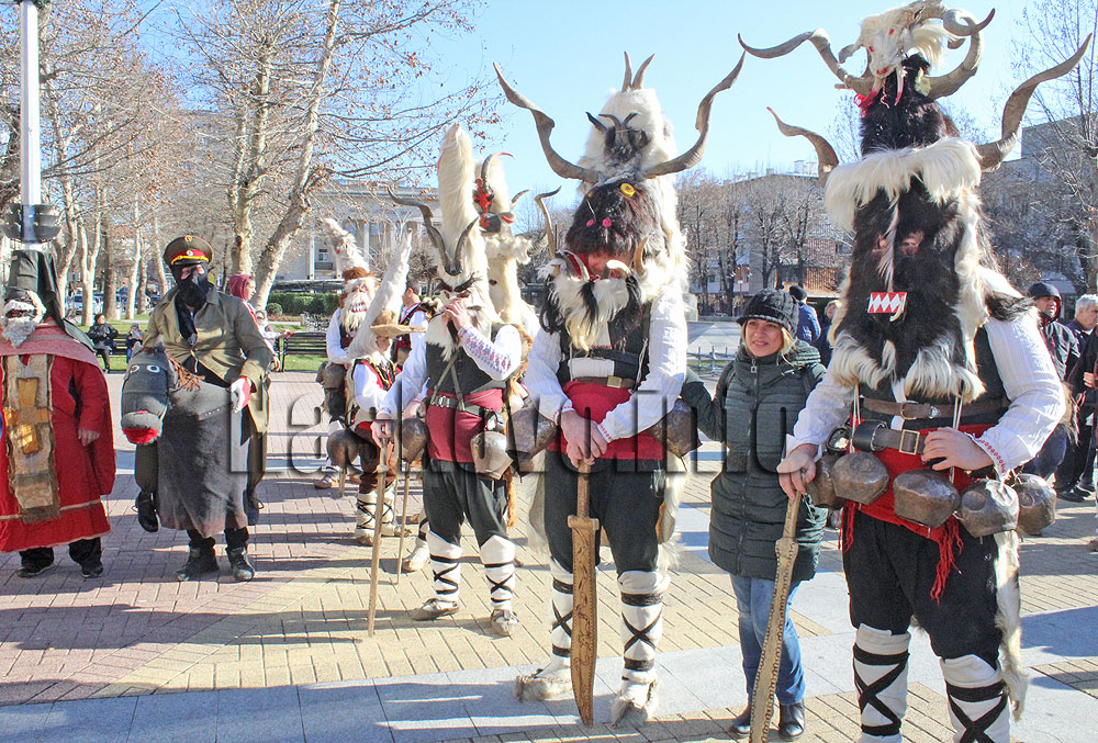 Коледари и кукери огласиха центъра на Хасково