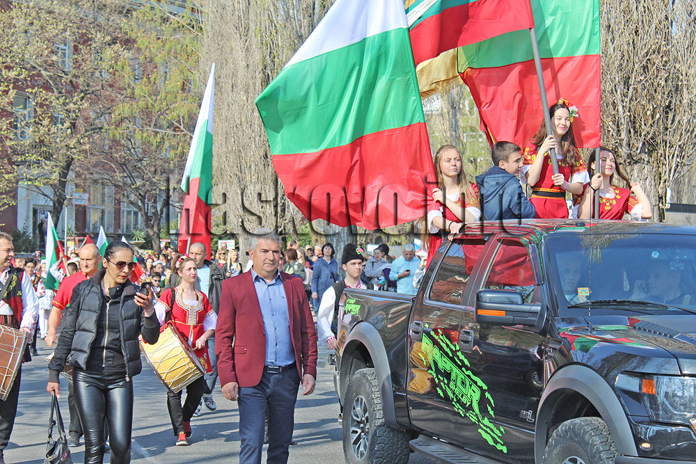 Близо 1100 танцьори в народни носии от 45 формации от региона и страната се събраха на площад „Свобода“. Оттам тръгна шествието което премина покрай театъра и по булевард „България“ стигна до спортна зала „Дружба“, където се откри фестивалът. Шествието традиционно беше водено от момичета, развяващи националното знаме.