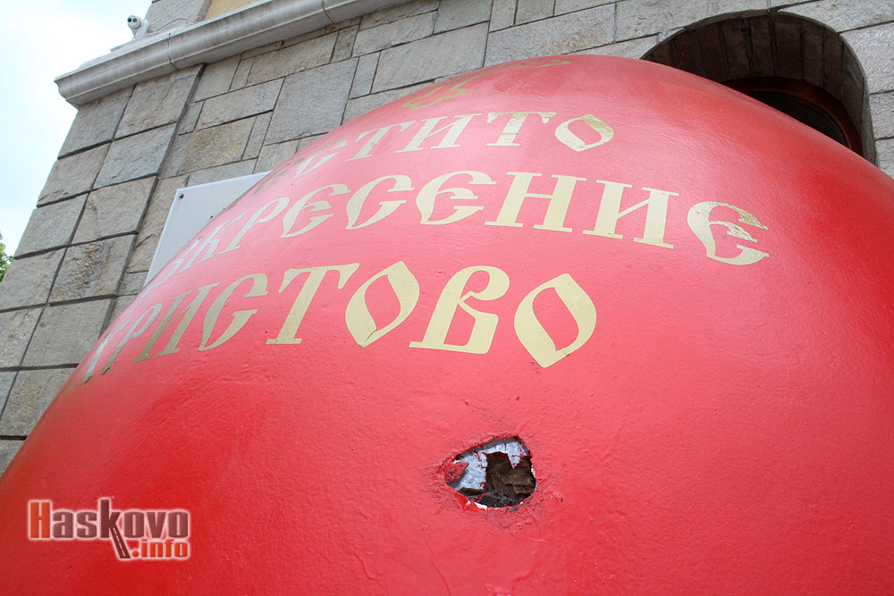 Вандали пробиха голямото яйце от Великденската украса пред кметството в Хасково.