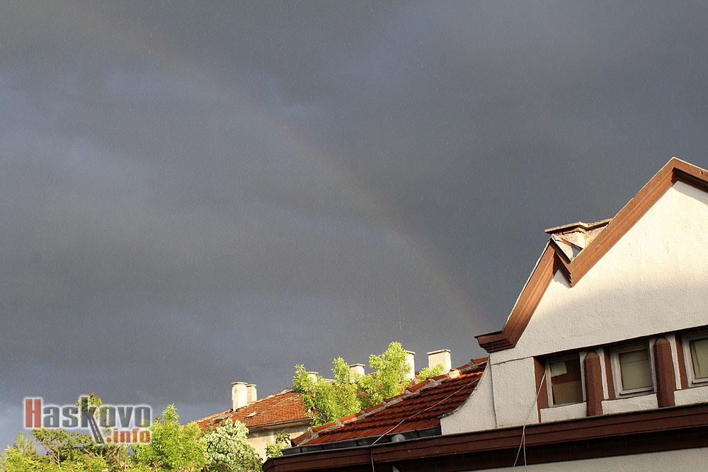 Дъга се появи в небето над Хасково привечер на Гергьовден.