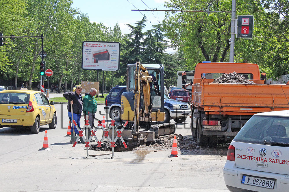 Едната е на кръстовището на булевардите „Съединение“ и „Стефан Стамболов“ до автогарата. Там е спряна водата на съседните блокове. Аварийният екип е разкопал в кръстовището, като шофьорите трябва да карат внимателно.