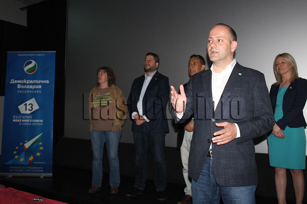 По неговите думи на предстоящите избори на 26 май трябва да се покаже, че има нов път и че изборът не е между ГЕРБ и БСП. „Ако вкараме двама души ще го покажем много звучно. Ние сме реалисти. Ако сега покажем, че „Демократична България“ може двама евродепутати, то на следващите избори, че може много кметове в областни центрове, десетки в общински центрове, стотици, а защо не и хиляди общински съветници в страната и достатъчно народни представители, за да може това управление което имаме сега да бъде невъзможно“, завърши водачът на листата на „Демократична България“.