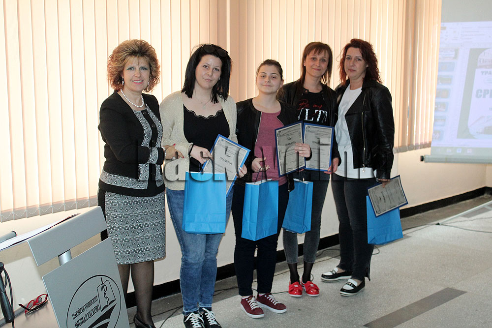 Директорът на филиала проф. Коста Костов награди бивши преподаватели в Медицинския филиал. Плакети с благодарност за работата им получиха Надежда Панева, Тодорка Запрянова, Надка Паронова, Стоянка Перчемлиева, Запринка Дъбова, Милка Белова, Мата Георгиева, Костадинка Бахчеванова, Веселина Гончева, Кристина Костадинова, Благовеста Калоянова, Росица Иванова, Тонка Латева, Анна Йорданова, Славея Славова, Гергана Андонова, Дияна Вълчева.