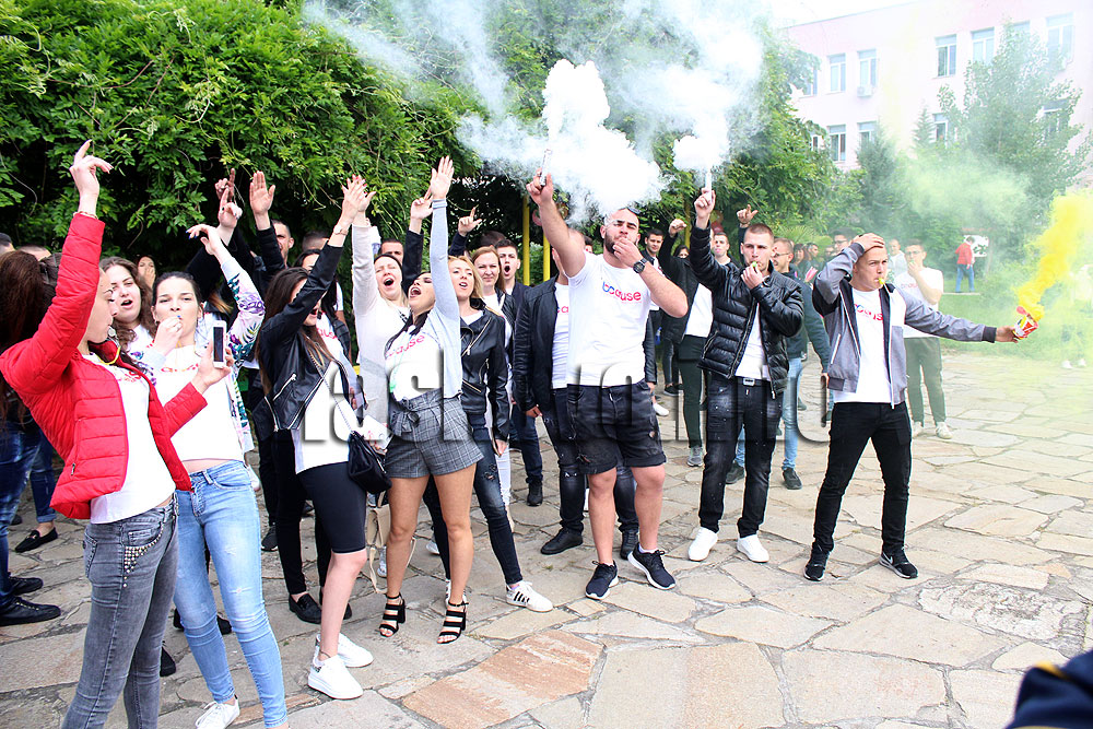 Повечето от тях бяха със специални тениски. Зрелостниците и преподаватели направиха благотворителна кампания за малкия Кристиян Милчев от Хасково, който страда от прогресивна мускулна дистрофия тип Дюшен. За детето вече са събрани 1 540 лв.
