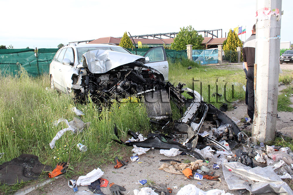 От сериозния удар е пострадала жената на шофьора, която е откарана в съзнание в Спешно отделение на хасковската болница. Колата е с разбита предница. По пътя има боклуци от ударена кофа за смет.