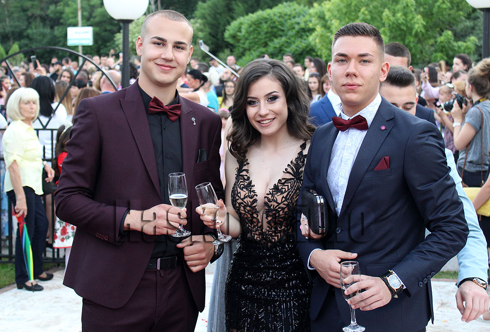 Клас абитуриенти от Математическата пристигна на бала си с автобус, миска слезе от кабриолет