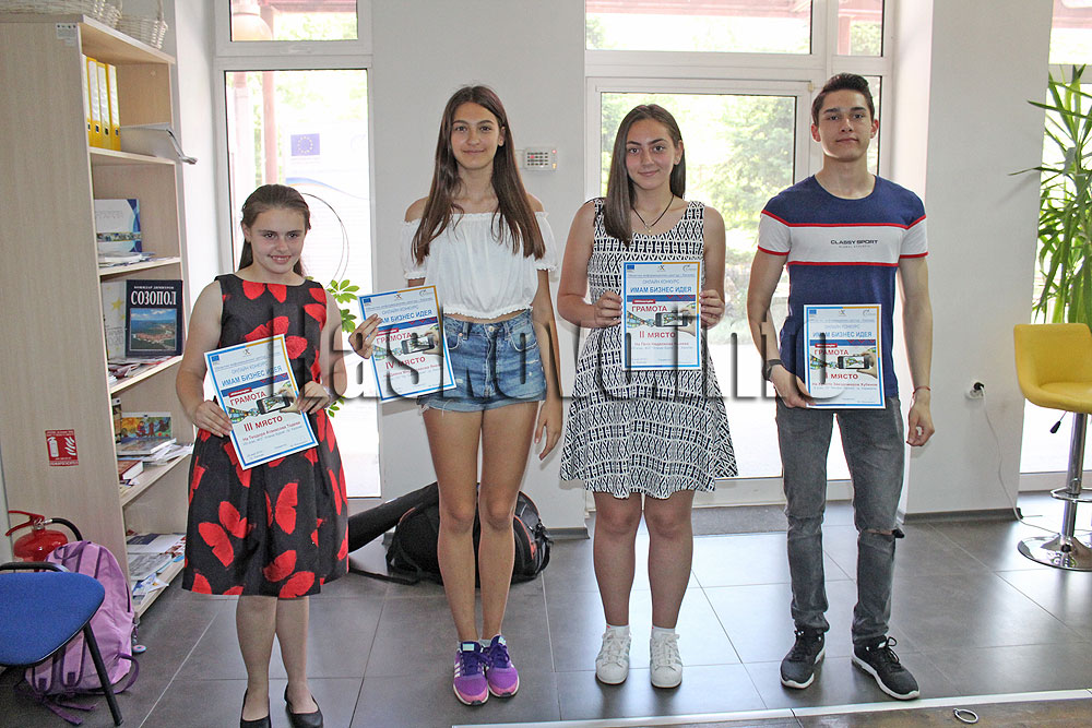 Четирима ученици бяха наградени с грамоти и подаръци от онлайн конкурса „Имам бизнес идея“ на Областния информационен център в Хасково.