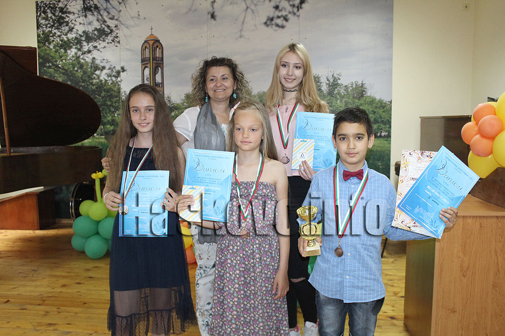 В силния конкурс участваха пианистките Ванеса Бъчварова на 11 г., Десислава Младенова на 9 г. и 14-годишната Атина Нико, както и акордеонистът Николай Златков на 9 г. Ванеса спечели сребърен медал и диплом, а останалите таланти са с бронзови медали и дипломи, както и ваучери за книги. Момичетата са подготвени от преподавателя по пиано Краси Генева, а Николай – от Татяна Славчева. Малко по-рано Ники спечели бронзов медал и таблет от етнофестивала в Минерални бани.
