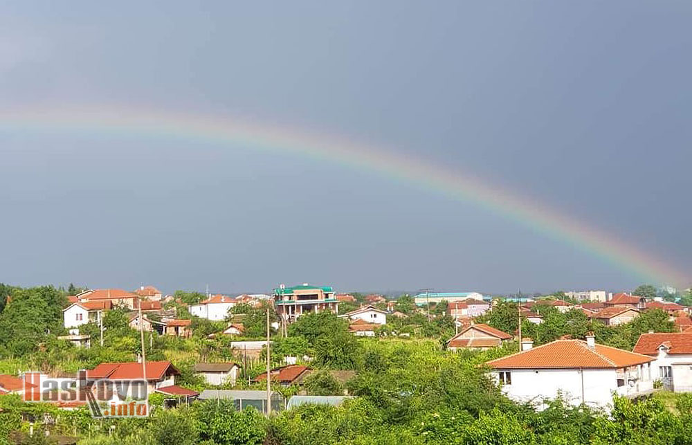 Дъга се появи в небето над Хасково след силния следобеден дъжд.