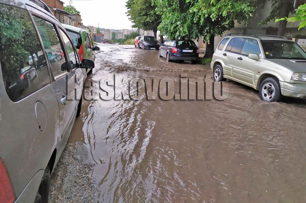 На няколко пъти днес в Хасково се изля проливен дъжд, който за кратко наводняваше улици.