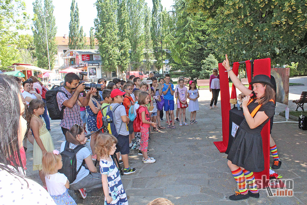 Куклен театър забавлява децата пред хасковската спортна зала "Дружба".