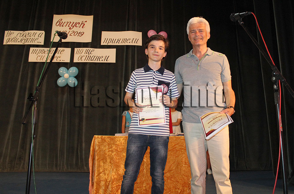Отличниците са 52, като 24 са пълните отличници, които получиха и грамоти. Момчил Марчев и Нели Тенчева постигнаха отлични резултати на Националното външно оценяване по български език и литература – по 96.5 точки. Сред пълните шестици са Габриела Данева, която е ученик на годината и Цветелина Бобутанова, която беше поздравена от директора Венко Точевски за благотворителните кампании, които организира.