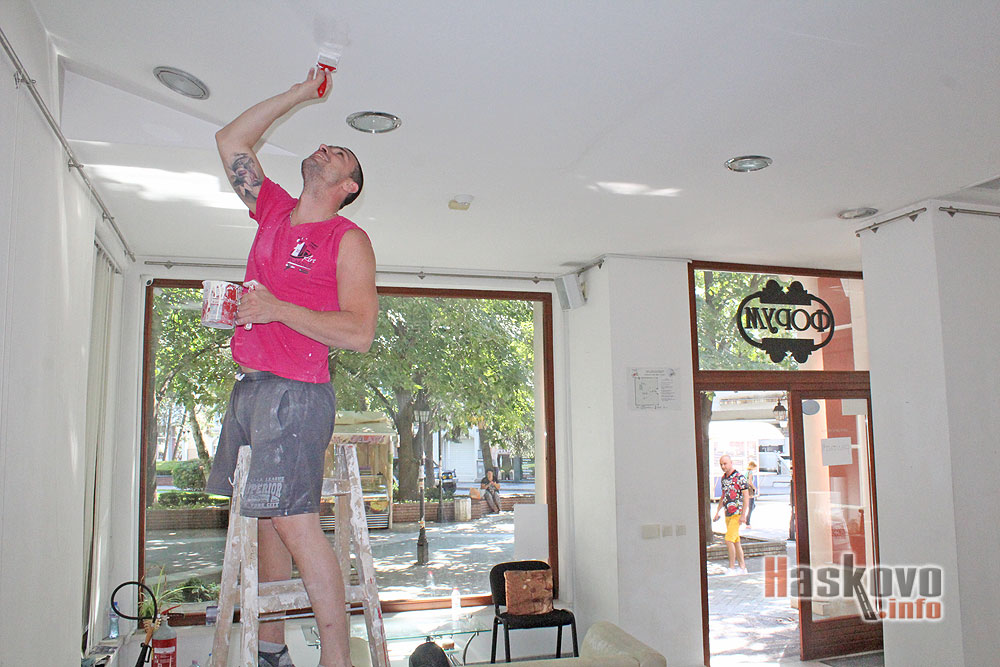 Хасковската художествена галерия „Форум“ е в ремонт до понеделник. Майстори измазват стените и таваните на двете нива.