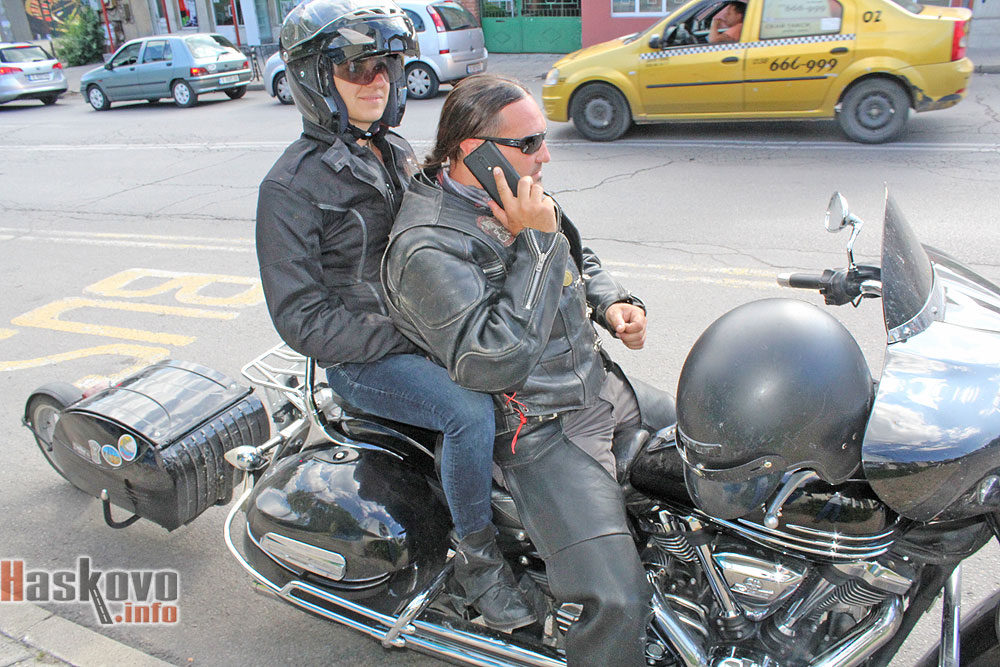 Двойка на мотоциклет Ямаха с ремарке събра погледите на минувачите по булевард „Освобождение“ в Хасково.