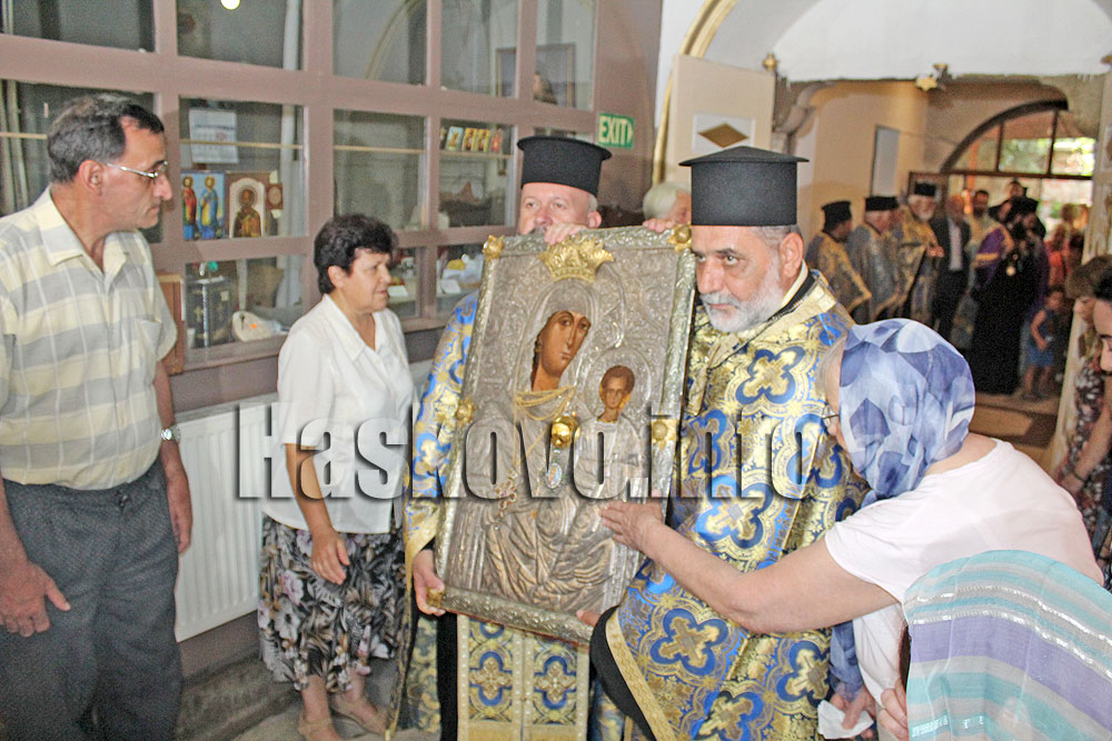 Миряни посрещнаха чудотворната икона „Света Богородица – златна ябълка“ в хасковската църква „Успение на пресвета Богородица“.