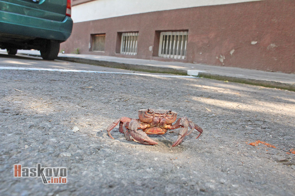 Рак се появи в жегата на улица "Петко Славейков" зад Бизнесцентъра в Хасково.