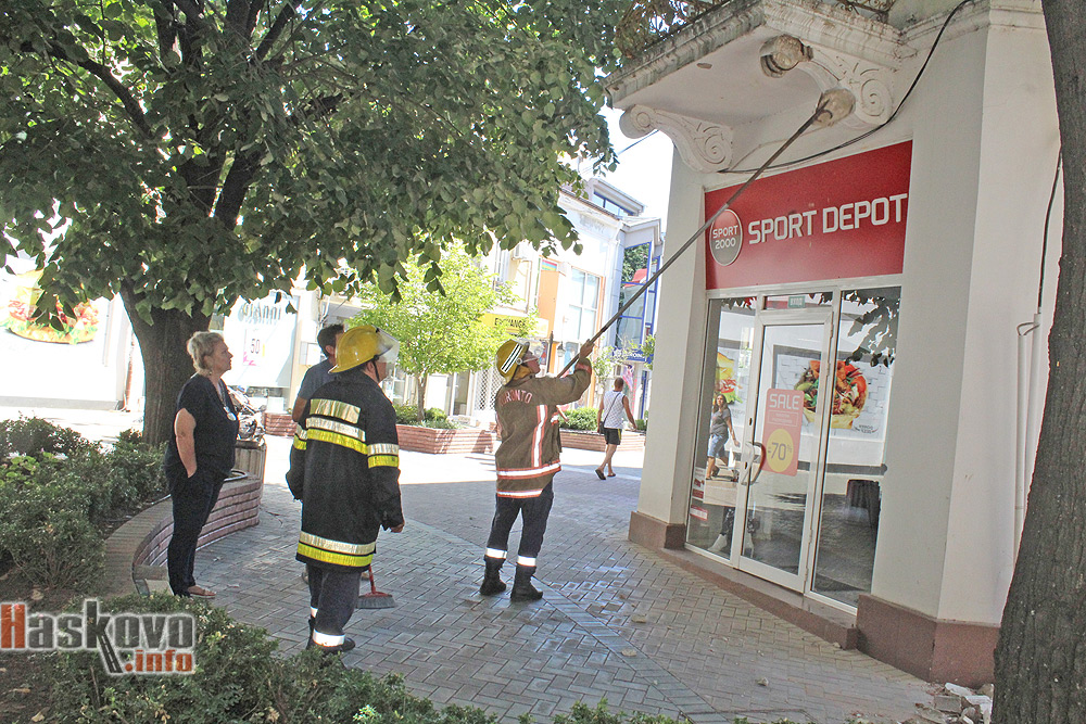 Пожарникари премахнаха опасни парчета от фасадата до Чарши джамия в Хасково, от която тази сутрин паднаха големи отломки.