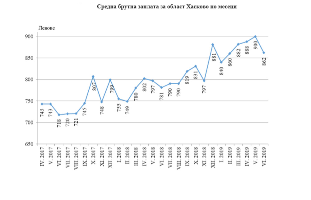 Средната заплата за второто тримесечие на годината в региона е 884 лева, което е с около 3% повече от първите три месеца. Най-висока тя е била през май – 900 лева и най-ниска през юни – 862 лева. При сравнението между обществения и частния сектор разликата е над 268 лева.