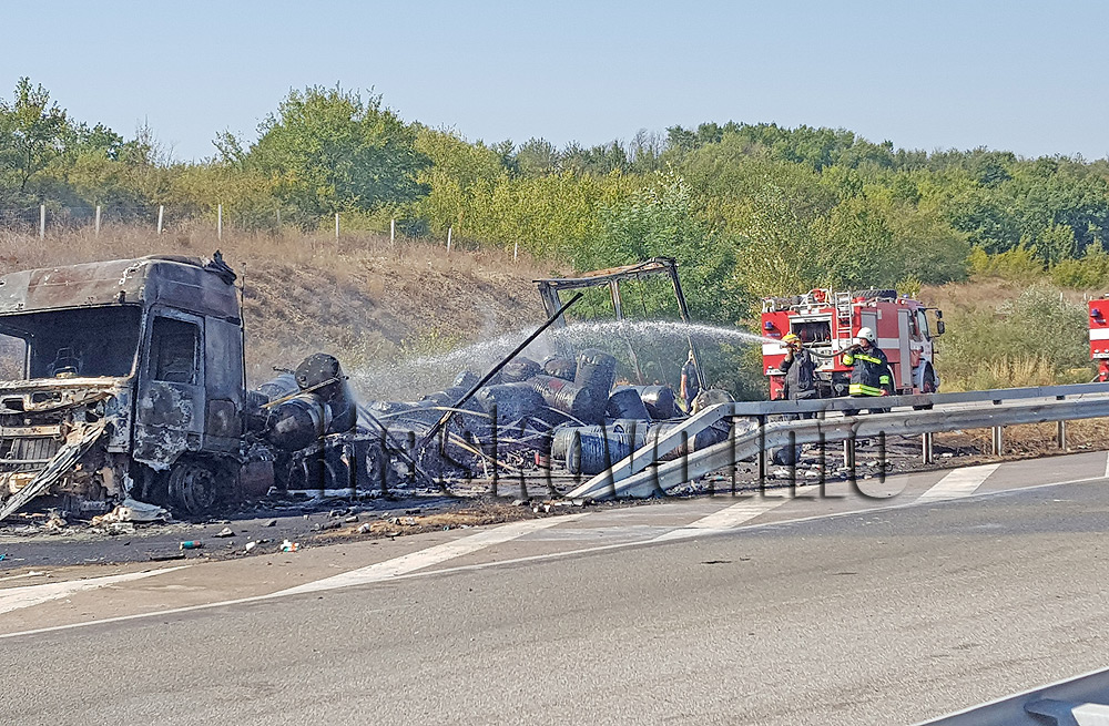 Горели са спрейове лак, които са се взривявали от високата температура, както и варели с вещества, които тепърва ще се установява дали са вредни от химическа лаборатория. Запалили са се и сухи треви в района на камиона, който е с турска регистрация.